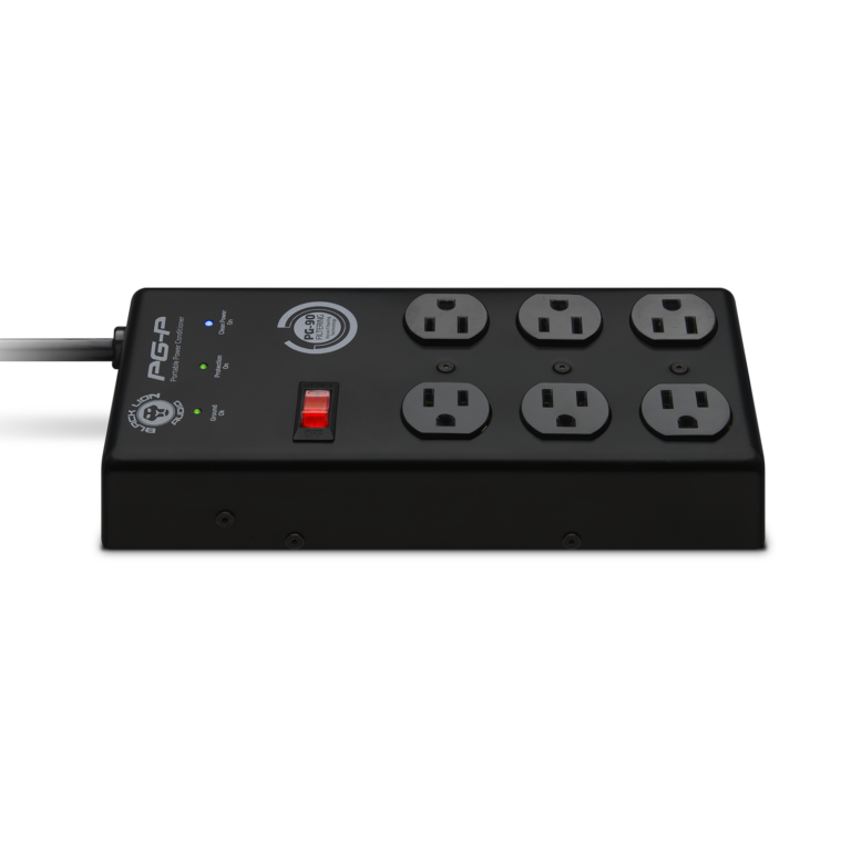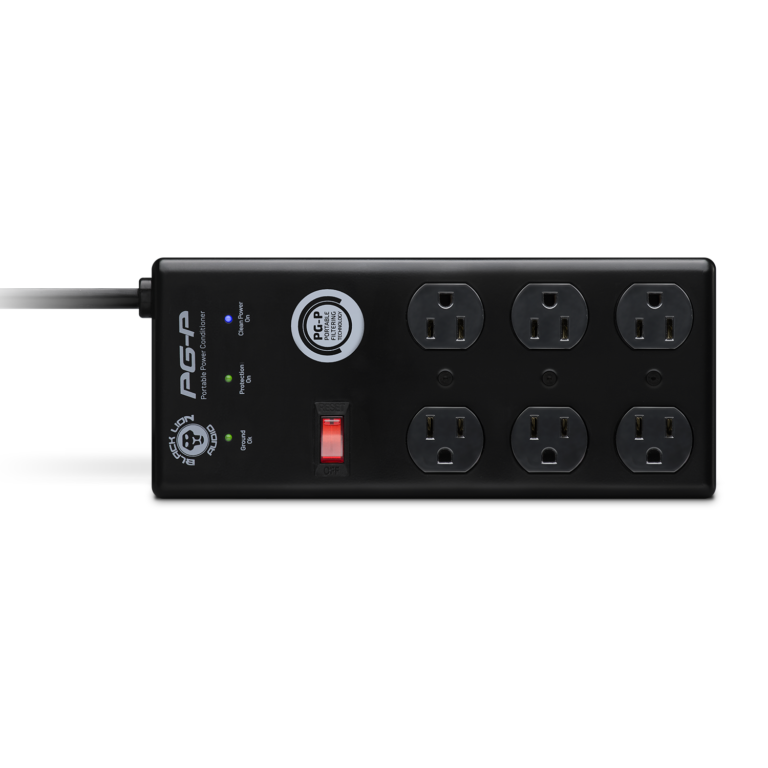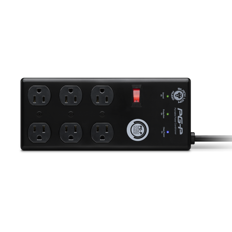 [/vc_column][/vc_row][vc_row content_placement=”top” css=”.vc_custom_1622579663286{padding-bottom: 40px !important;}”][vc_column width=”1/2″][ultimate_heading main_heading=”Studio-grade Filtering Made Portable.” heading_tag=”h3″ alignment=”left” main_heading_margin=”margin-bottom:40px;” margin_design_tab_text=””][/ultimate_heading][vc_column_text]There’s no doubt that when it comes to power, musicians have it bad. Whether it’s modern modeling amplifiers, or vintage synthesizers, bad power is gonna be heard throughout your signal. And it’s everywhere — in homes, on stages, and especially in many rehearsal rooms. Black Lion Audio has been trusted for years for modifying the best gear and making it even better, and that’s what it took to create the PG-P: taking industry-standard designs, and improving them to the point of peak performance. The PG-P might look like a run-of-the-mill surge protector, but in reality it’s a studio-class power conditioner— PG-P doesn’t just provide more noise filtering than other portable conditioners, it provides the same noise filtering found in the majority of the world’s rack-mount power conditioners!Your gear deserves the best power, and we took great care in making sure the PG-P delivers just that — thanks to it’s PG-P Filtering Technology. In testing, this has provided an average of 3x the noise filtering of other portable power conditioners at the same price point. Six wall-wart spaced outlets provide studio-grade power on the go; perfect for any musician’s rig!