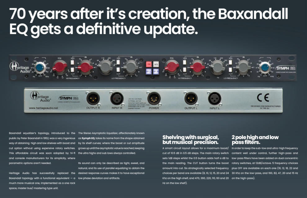 Heritage Audio a remplacé avec succès la topologie Baxandall par un équivalent fonctionnel – beaucoup plus musical, implémenté comme une unité de type bus maître / mastering à un seul rack.
